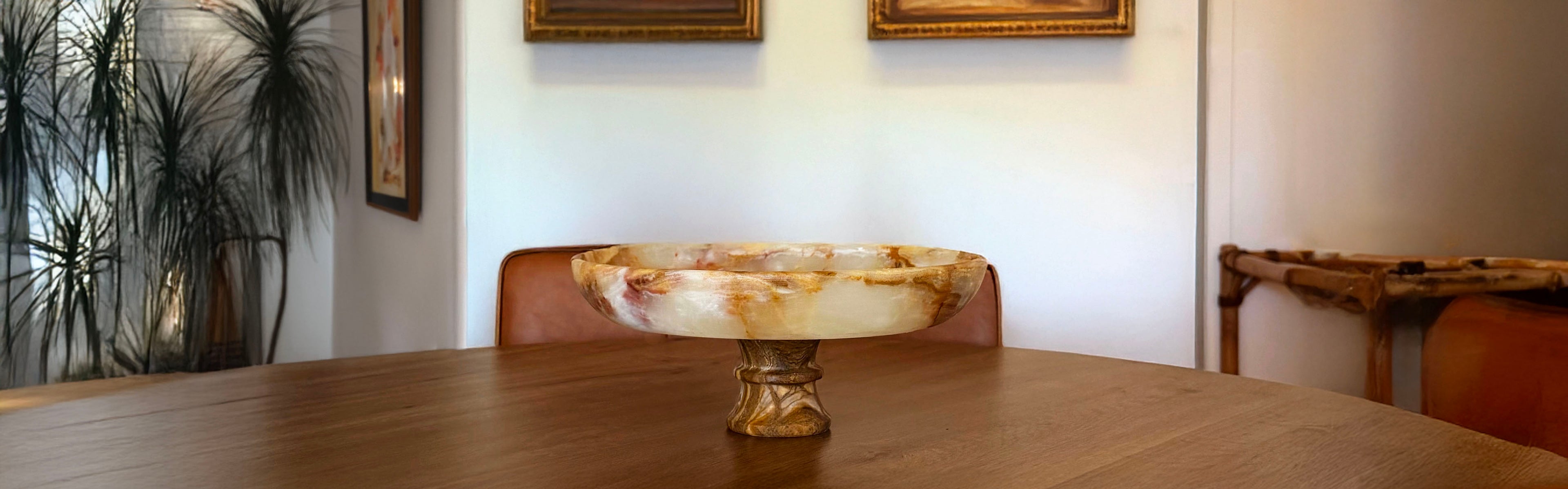 SAÉA Centerpiece Pedestal Bowl in Onyx | Hand-carved from Natural Stone