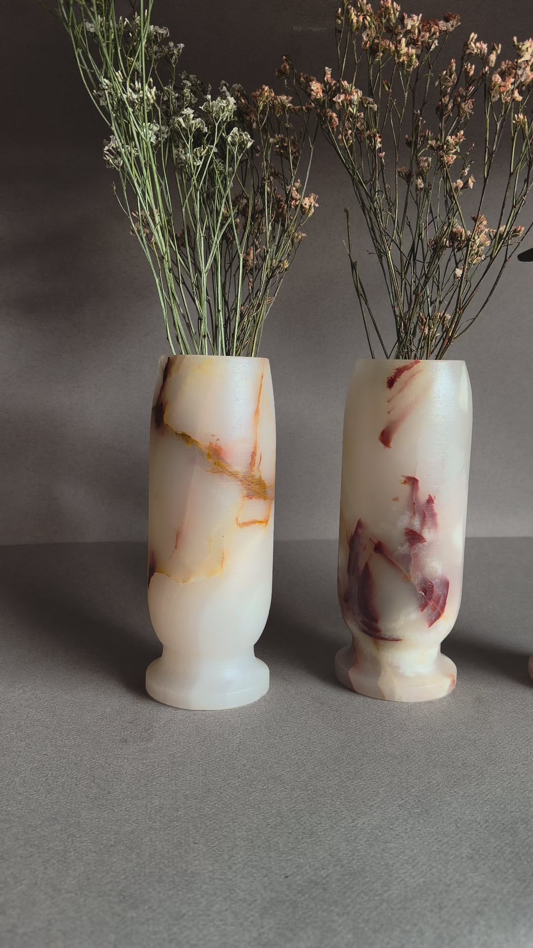Each vase is carved from a single block of raw onyx. No two will ever be alike—every vein, blush streak, and honey-toned fracture line is entirely unique.