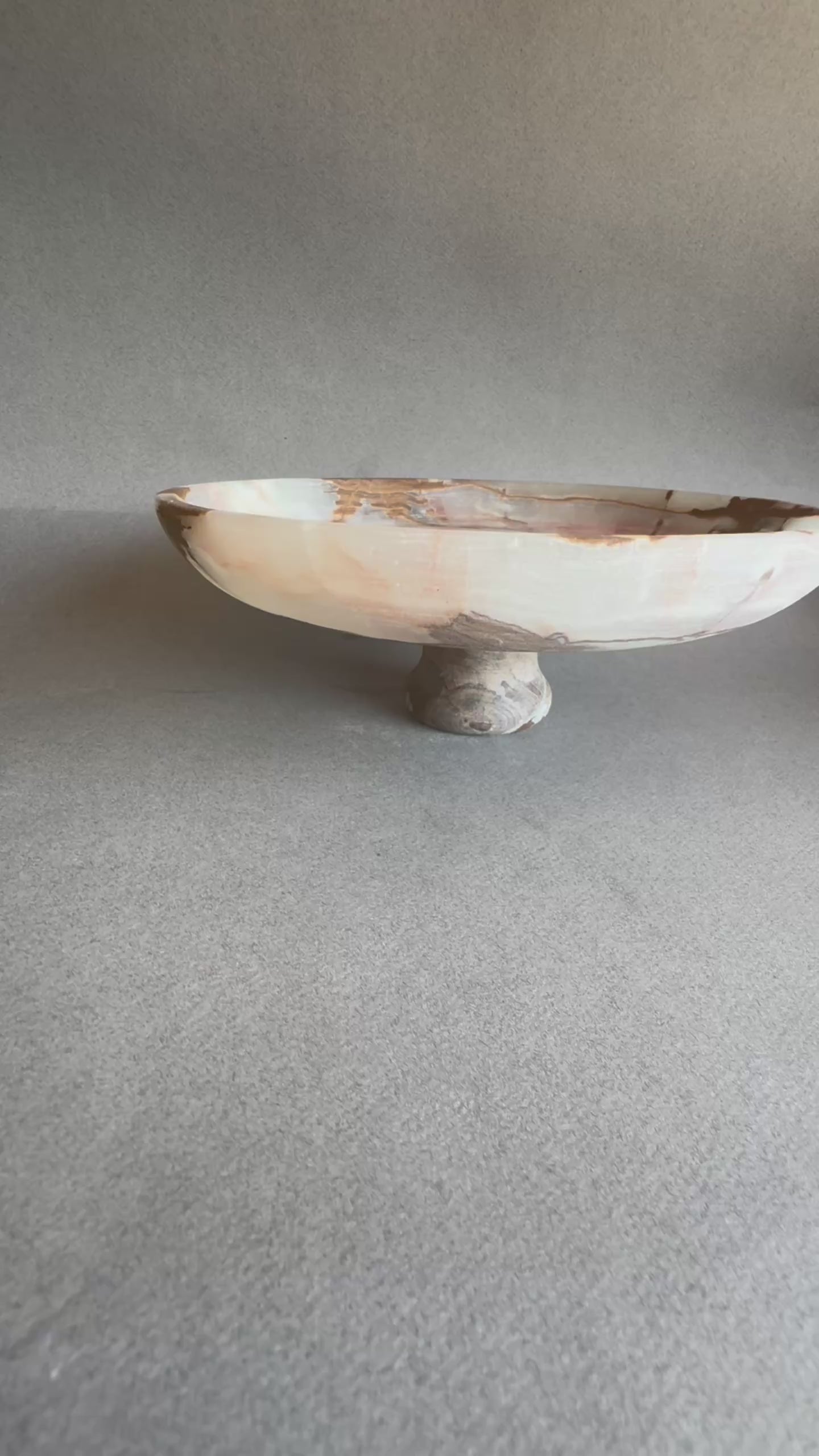 Cream onyx swirled with amber, honey, and terracotta tones tells its own natural story; each piece unique, each veining pattern unrepeatable. Whether placed on a dining table, filled with fruit on a kitchen island, or styled with perfume and jewelry on a dresser, it carries an earthy, timeless presence.