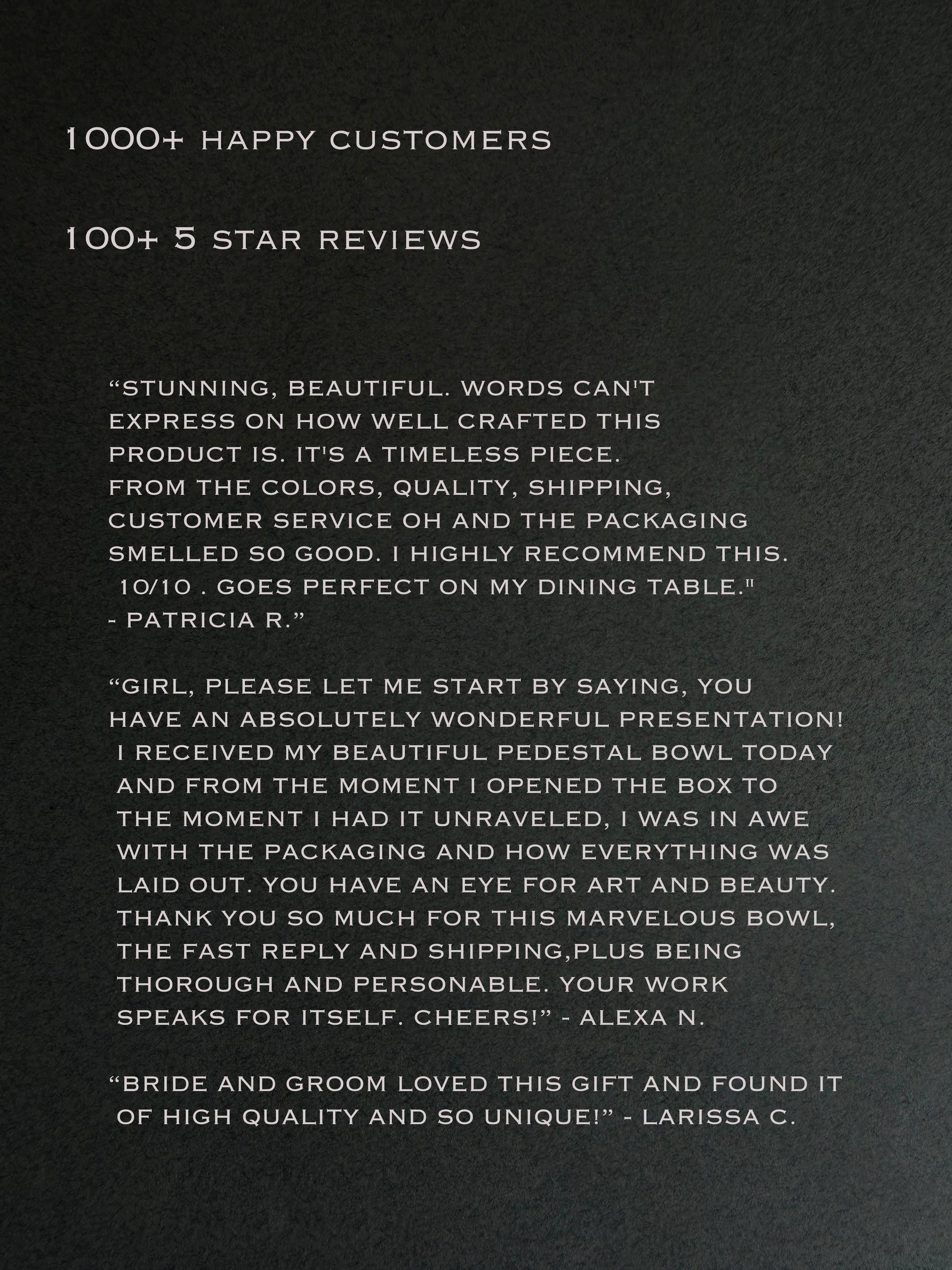 • Each piece is one of a kind