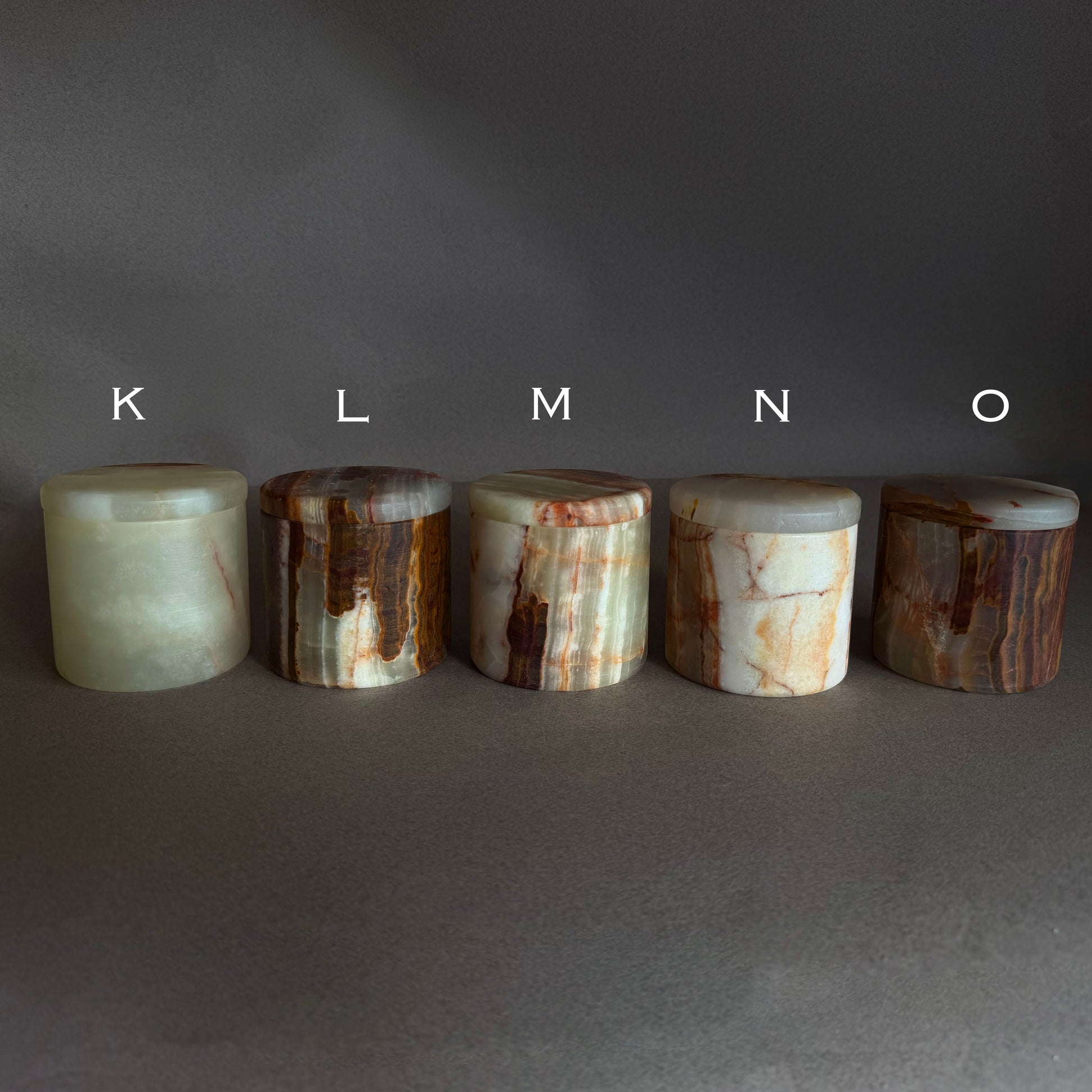 In hues of cream, honey, rose, and rust—these lidded onyx jars are tiny sanctuaries of stone that keep your most loved essentials safe and grounded. Each hand-carved onyx jar with lid begins in the mountains of Balochistan, where artisans cut and shape the raw stone; it is then finished in our San Diego studio with a coat of food-grade beeswax that enhances the natural veining while keeping the piece completely toxin-free.