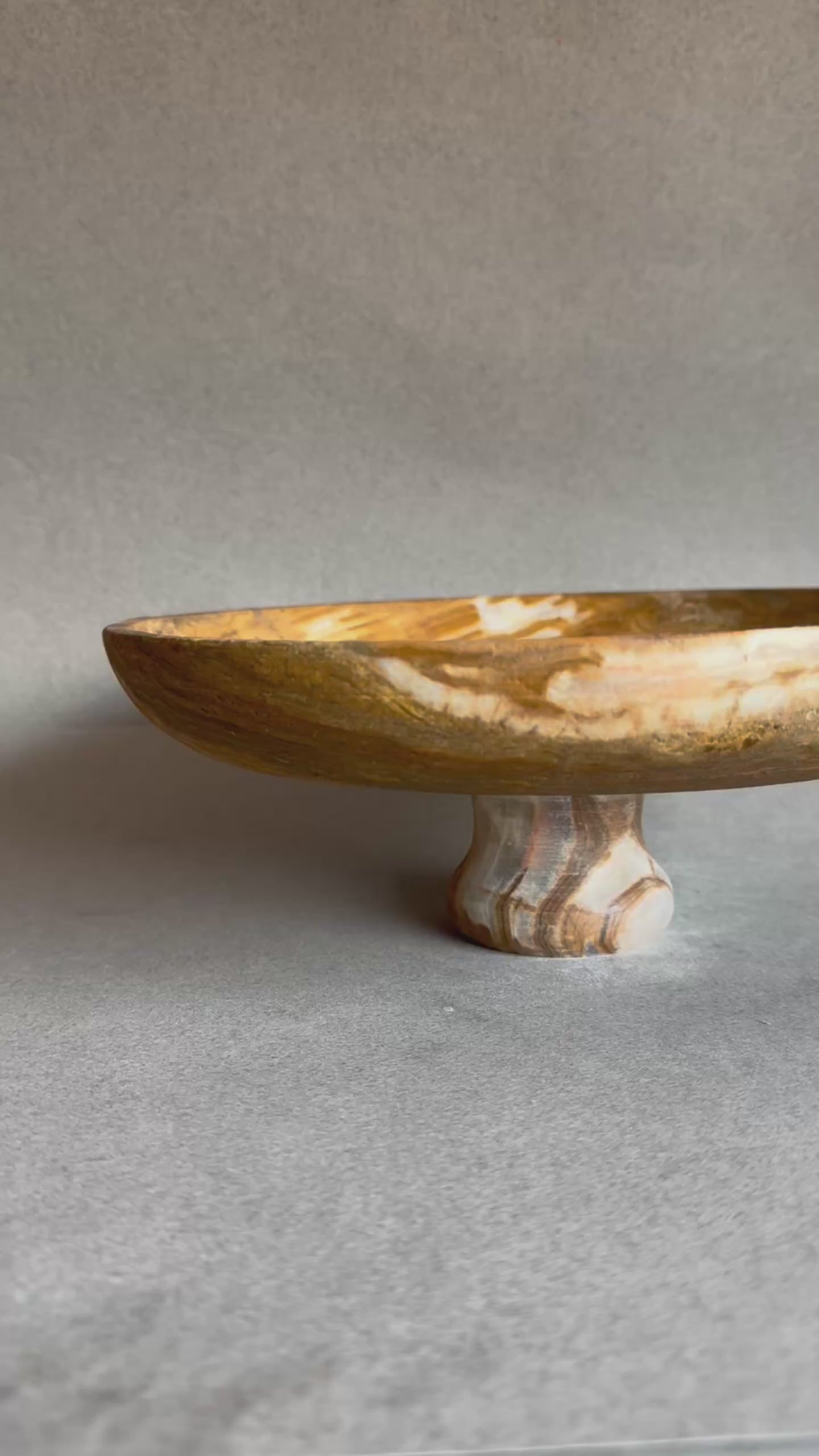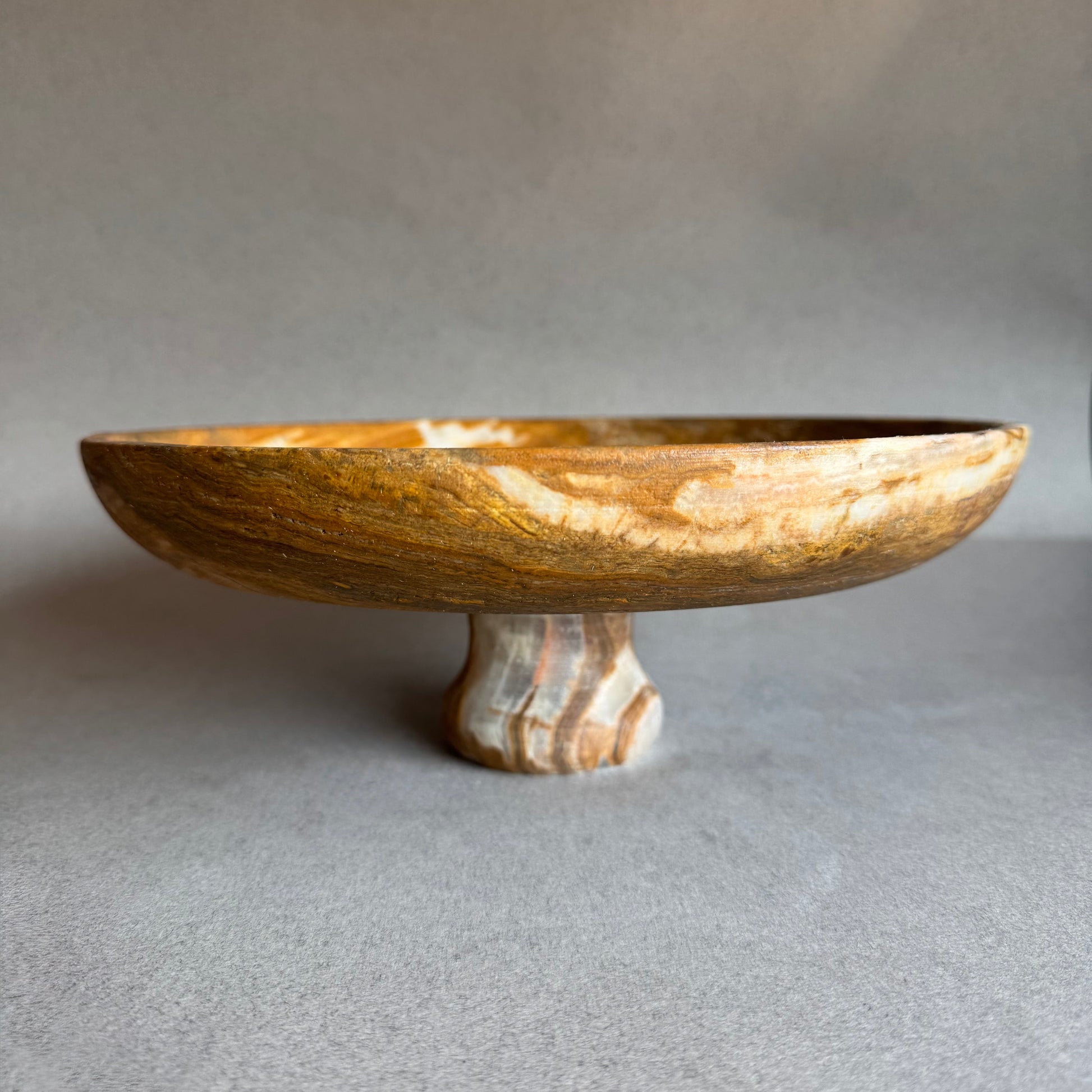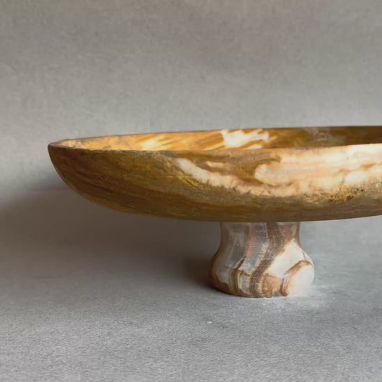 Ivory, blush, and sandstone—this bowl captures the softness of sun-bleached clay and pale mineral blush. With soft striations of rose, cream, and warm neutral tones, this onyx pedestal bowl is hand-carved into a sculptural form that balances grounded beauty with timeless presence.
