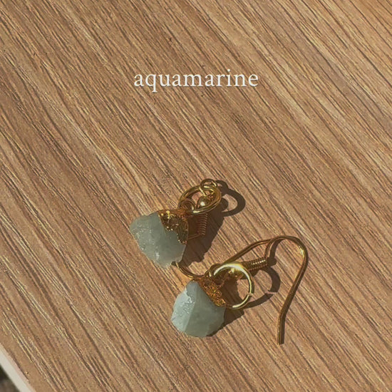 These handmade SAÉA earrings feature raw-cut natural gemstones plated with 22K gold. Lightweight and sculptural, they move effortlessly with you, infused with the quiet energy of the earth.