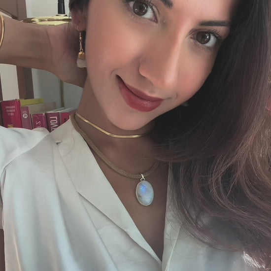 • Pendant: Natural Rainbow Moonstone (approx. 1” by 0.5")